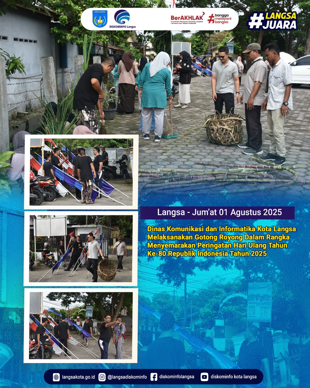 Deskripsi - Gotong Royong Diskominfo Langsa menyambut HUT RI Ke- 80